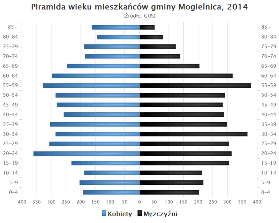 - Piramida wieku mieszkańców gminy Mogielnica w 2014 roku[4].