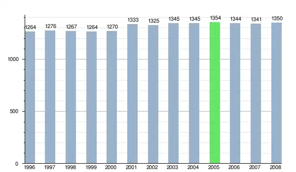 Według danych z dnia 31 grudnia 2012, wieś zamieszkiwało 1360 osób, w tym 692 kobiety i 668 mężczyzn[6].