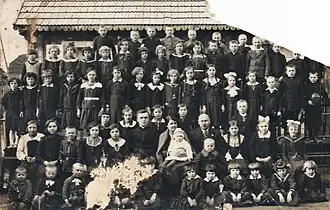 W 1916 r. we wsi została założona jednoklasowa szkoła powszechna[106][107]. W 1934 r. został oddany do użytku budynek świetlicy wiejskiej, w którym siedzibę znalazła szkoła. Poświęcenie budynku nastąpiło 18 lutego 1934 r.[108], a znalazła się w nim także siedziba świetlicy Związku Strzeleckiego[109]. Po II wojnie światowej uruchomiono także placówkę wychowania przedszkolnego[110] oraz filię biblioteczną[100]. Szkoła została zlikwidowana w drugiej połowie XX w. (później budynek mieścił świetlicę wiejską, w ostatnich latach nieużytkowany, w 2018 r. został wyburzony), a uczniowie przeniesieni do nowo wybudowanego budynku szkoły podstawowej w Ludwikowie.