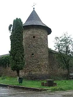Pozostałe zabudowania monastyru (w tym mury obronne z wieżą ponad bramą pośrodku ściany wschodniej oraz basztami w narożnikach południowo-wschodnim i północno-wschodnim) pochodzą z XVI w. i zostały przebudowane w XVII w. W narożniku północno-zachodnim znajduje się dom mieszkalny (clisarniţa), wzniesiony na początku XVII w. staraniem metropolity Efrema. Obecnie w budynku tym znajduje się muzeum, do którego najcenniejszy eksponatów należą drewniany rzeźbiony tron przypisywany Piotrowi Rareszowi, epitafium na tkaninie z 1494, kolekcja zbiorów archeologicznych (w tym monety), około 20 ikon (najstarsze z XVII w.), księgi liturgiczne i psałterze z XVII i XVIII w.