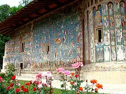 Oprócz malowideł na elewacji zachodniej zachowały się też freski na innych zewnętrznych ścianach cerkwi – na elewacji południowej oraz na apsydach. Na ścianie południowej znajduje się typowe dla bukowińskich cerkwi Drzewo Jessego. Nad południową arkadą przedsionka znajduje się kolejna scena deesis (Chrystus tronujący między Marią i Janem Chrzcicielem), a po jej prawej stronie przedstawiono w kolejnych scenach żywoty św. Mikołaja i patrona Mołdawii św. Jana Nowego. Na filarze arkady znajduje się przedstawienie św. Jerzego, patrona cerkwi. W pobliżu znajdują się także portrety dwóch postaci związanych z monastyrem: pustelnika Daniły oraz metropolity Grigore Roșca. Na zewnętrznych ścianach apsyd znajduje się tzw. „hierarchia niebiańska” (w centralnym pionie, poniżej okna, znajduje się ponownie św. Jerzy, tym razem na tronie). Zachowały się też ślady malowideł na ścianie północnej, m.in. akatystu, scen z Księgi Rodzaju oraz żywotów kolejnych świętych.