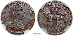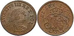 - ↑ Czesław Kamiński, Jerzy Żukowski, Katalog monet polskich 1697–1763 (Epoka Saska), Warszawa: Krajowa Agencja Wydawnicza, 1980, s. 258–260.