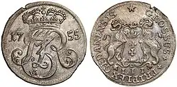 - ↑ Czesław Kamiński, Jerzy Żukowski, Katalog monet polskich 1697–1763 (Epoka Saska), Warszawa: Krajowa Agencja Wydawnicza, 1980, s. 261.