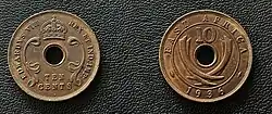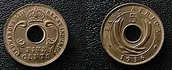 - ↑ NGC Collectors Society: British East Africa silver CROWN 1936-DATED 1984 COINCRAFT ISSUE. www.collectors-society.com. [dostęp 2023-01-10]. (ang.).