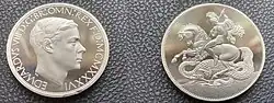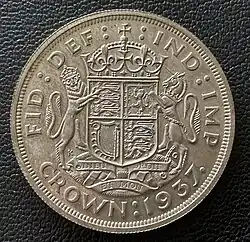 - ↑ NGC Collectors Society: Great Britain Silver CROWN 1936-DATED 1996 ICB ISSUE. www.collectors-society.com. [dostęp 2023-01-10]. (ang.).