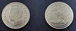 - ↑ London Coins: Australia Crown Edward VIII Patina Collection undated Pattern Piedfort. www.londoncoins.co.uk. [dostęp 2023-01-10]. (ang.).