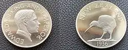 - ↑ Ebay: EDWARD VIII 1937 NEW ZEALAND ALUMINIUM PROOF PATTERN KIWI FLORIN - mintage 18. www.ebay.co.uk. [dostęp 2023-01-10]. (ang.).