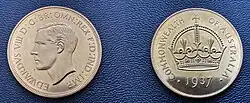 - ↑ London Coins: Ireland Crown Edward VIII Retro Pattern Fantasy 1937 by INA Ltd. www.londoncoins.co.uk. [dostęp 2023-01-10]. (ang.).