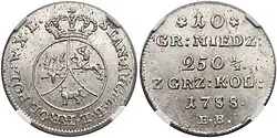 | 6 | 10 groszy [miedzianych] | – | ⅓ | srebro | 2,49 | 375 | grzywna kolońska |