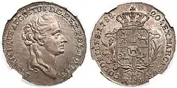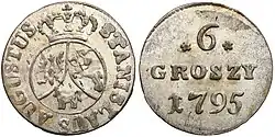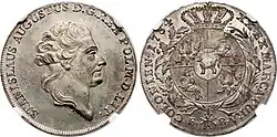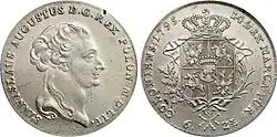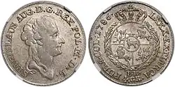 - ↑ Czesław Kamiński, Janusz Kurpiewski, Katalog monet polskich 1764–1864, wyd. II poprawione, Warszawa: Krajowa Agencja Wydawnicza, 1977, s. 88, ISBN 83-03-03103-1.
