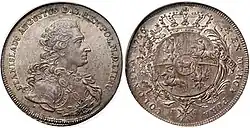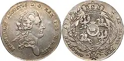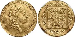 - ↑ Ustawa Waloru y Kursu Monet w Krajach Rzeczypospolitey, y sposob płacenia Summ w Prowincyach Koronnych., [w:] Konstytucye Sejmu Walnego Ordynaryinego w Warszawie Roku Pańskiego MDCCLXVI. Dnia 6. Pazdziernika. Złożonego., Warszawa: Drukarnia J. K. Mci y Rzeczypospolitey u XX. Scholarum Piarum, 1766.