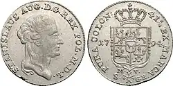 - ↑ Czesław Kamiński, Janusz Kurpiewski, Katalog monet polskich 1764–1864, wyd. II poprawione, Warszawa: Krajowa Agencja Wydawnicza, 1977, s. 85, ISBN 83-03-03103-1.