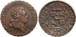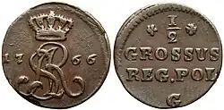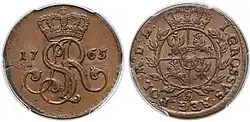 Uniwersałem Komisji Skarbu Koronnego z 9 stycznia 1766 r. wprowadzono monety miedziane[15]: