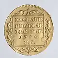 W przypadku monety złotej postanowiono bić pojedyncze dukaty ściśle według stopy holenderskiej, co zabezpieczało przed ich wywozem na Zachód i dawało korzystny kurs wymiany na dukaty węgierskie. Nowe dukaty mogły kursować na równi z dukatami niderlandzkimi i niemieckimi. Z jednej grzywny kolońskiej czystego złota miano wybijać 6852/283 dukata. Do emisji wykorzystywano złoto próby 982,6 – co oznaczało bicie 67 dukatów z grzywny kolońskiej stopu złota[17].