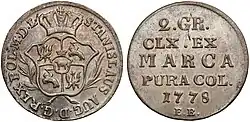 - ↑ Janusz Parchimowicz, Mariusz Brzeziński, Monety Stanisława Augusta Poniatowskiego, wyd. I, Szczecin: Nefryt, 2016, s. 13–435, ISBN 978-83-87355-84-5.