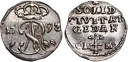 - ↑ Stanisław August Poniatowski. Trojak (3 grosze) w ZŁOCIE 1766, Gdańsk [online], archiwum.niemczyk.pl [dostęp 2021-12-11].