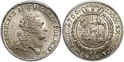 10 lutego 1766 r. uniwersałem dotyczącym monety srebrnej[20] podskarbi wielki koronny Teodor Wessel nakazywał bić[21]: