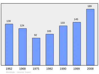 Według danych na rok 1990 gminę zamieszkiwały 133 osoby, a gęstość zaludnienia wynosiła 6 osób/km² (wśród 1545 gmin Langwedocji-Roussillon Montbolo plasuje się na 770. miejscu pod względem liczby ludności, natomiast pod względem powierzchni na miejscu 331.).