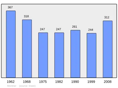 Według danych na rok 1990 gminę zamieszkiwało 261 osób, a gęstość zaludnienia wynosiła 24 osoby/km² (wśród 1545 gmin Langwedocji-Roussillon Montner plasuje się na 656. miejscu pod względem liczby ludności, natomiast pod względem powierzchni na miejscu 704.).
