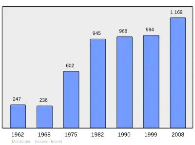 Według danych na rok 1990 gminę zamieszkiwało 968 osób, a gęstość zaludnienia wynosiła 47 osób/km² (wśród 1545 gmin Langwedocji-Roussillon Montrodat plasuje się na 349. miejscu pod względem liczby ludności, natomiast pod względem powierzchni na miejscu 366.).