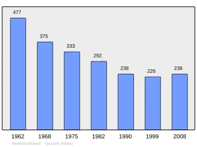 Według danych na rok 1990 gminę zamieszkiwało 238 osób, a gęstość zaludnienia wynosiła 9 osób/km² (wśród 747 gmin Limousin Montrol-Sénard plasuje się na 401. miejscu pod względem liczby ludności, natomiast pod względem powierzchni na miejscu 213.).