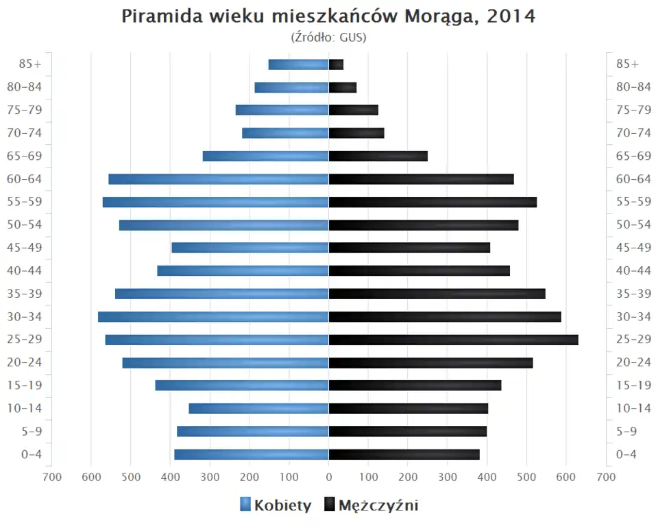 - Piramida wieku mieszkańców Morąga w 2014[21].
