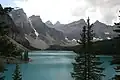 ![]() Widok na jezioro z Rockpile w dolinie Valley of the Ten Peaks | |