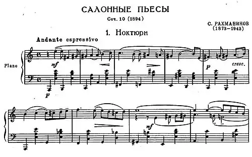 - ↑ Morceaux de salon, op. 10 (Sergei Rachmaninoff) [online], Pianolibrary.org [dostęp 2023-09-20].