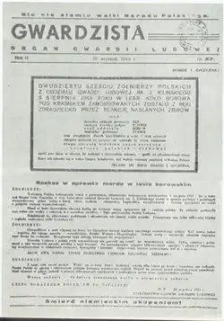 - ↑ Raport został wydany dopiero na początku 1944 kiedy w miejscu Gwardii Ludowej, której partyzanci zostali zamordowani pod Borowem, istniała Armia Ludowa.