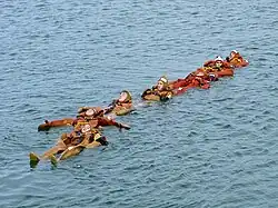 - ↑ Immersion Suit SOLAS Requirements – Explained in Simple Terms. imariners.com. [dostęp 2025-05-12]. Cytat: to ensure that the wearer’s body core temperature does not fall more than 2°C after a period of 6 h immersion in calm circulating water at a temperature of between 0°C and 2°C./...aby zapewnić, że temperatura ciała osoby noszącej nie spadnie o więcej niż 2°C po 6-godzinnym zanurzeniu w spokojnej, krążącej wodzie o temperaturze od 0°C do 2°C. (ang.).