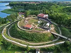 - Ruiny XIV-wiecznego zamku, zbudowanego na półwyspie Zamczysko opodal miasta,