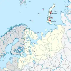 W okresie ZSRR na archipelagu Nowa Ziemia, oddzielającym Morze Karskie od Morza Barentsa, znajdował się radziecki poligon atomowy[26]. W latach 1955–1990 były przeprowadzane tu próby nuklearne, najpierw podwodne, w latach 1957–1962 nadziemne, a w latach 1964–1990 podziemne[26].