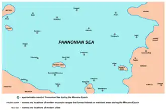 Morze Panońskie było częścią Paratetydy, rozciągającej się od dzisiejszych Austrii do Kirgistanu odnogi oceanu Tetydy, z którego wyodrębniło się w środkowym miocenie (około 10 mln lat temu). Było morzem zamkniętym i epikontynentalnym. Miało połączenie z ówczesnym Morzem Śródziemnym przez tereny dzisiejszej Kotliny Wiedeńskiej i Bawarii, z morzem zajmującym tereny dzisiejszej Wołoszczyzny i Pontu przez Żelazną Bramę oraz, w okresie największego zasięgu, z Morzem Egejskim przez dzisiejszą dolinę Południowej Morawy. Dzisiejsze panońskie góry wyspowe stanowiły na nim wyspy.