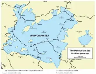 Morze Panońskie istniało około 9 mln lat. Uległo stopniowemu zanikowi wskutek spłycenia, wywołanego nagromadzeniem osadów i ruchami tektonicznymi. Ostatnie pozostałości Morza Panońskiego zniknęły około 0,6 mln lat temu.