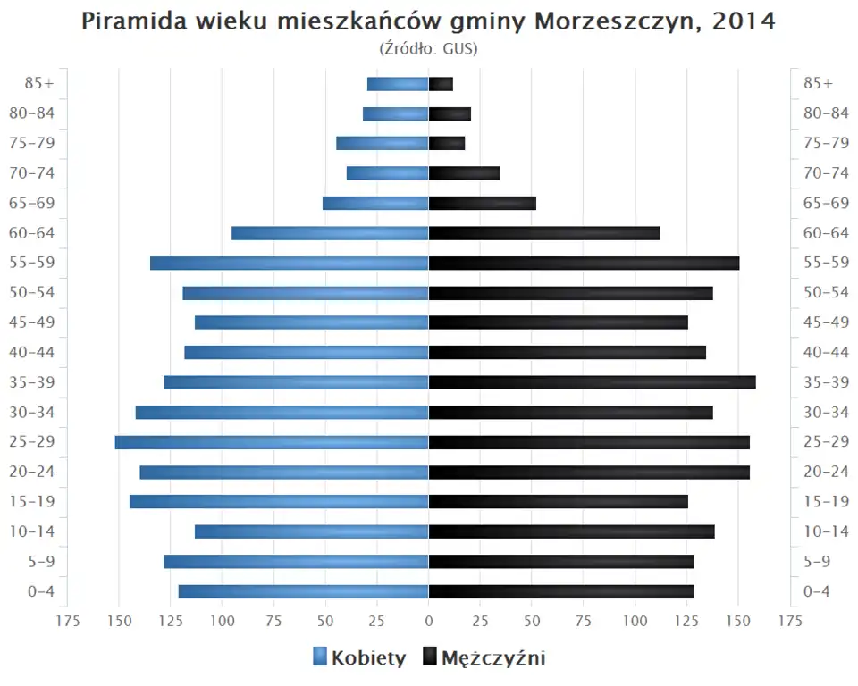 - Piramida wieku mieszkańców gminy Morzeszczyn w 2014 roku[1].