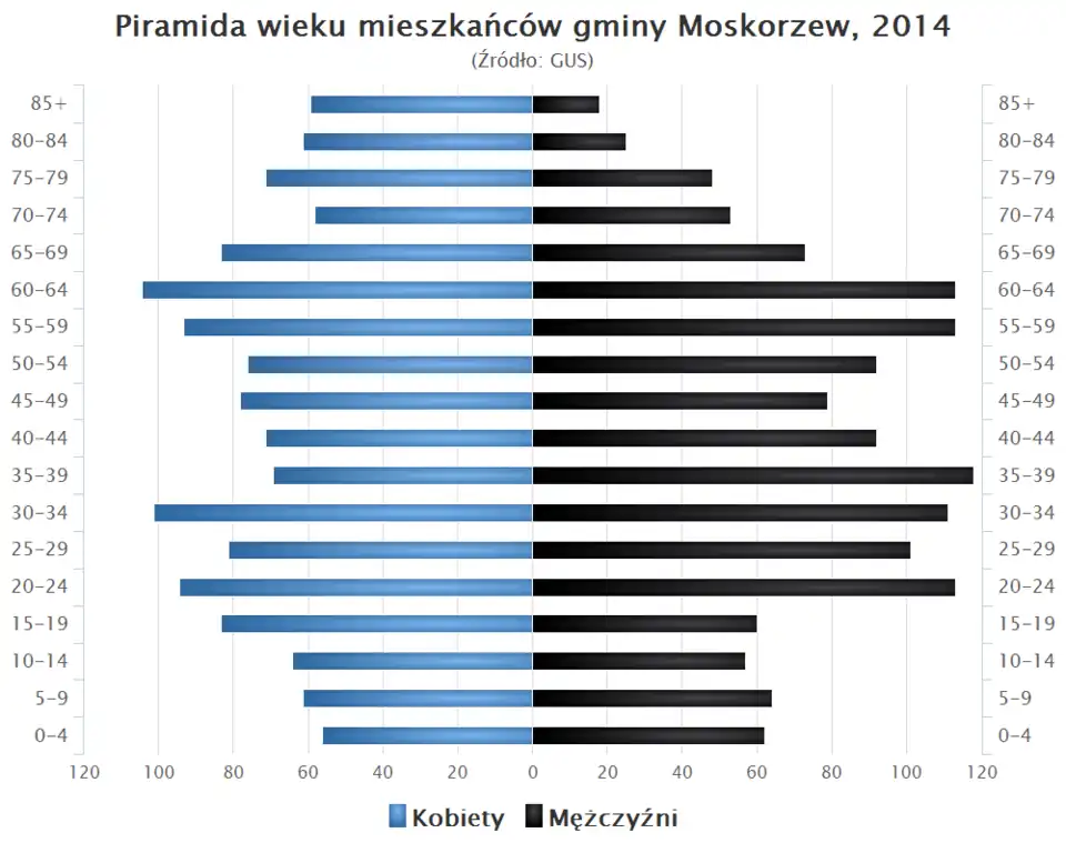 - Piramida wieku mieszkańców gminy Moskorzew w 2014 roku[1].