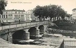 Z inicjatywy burmistrza Augustina Sturma wzniesiono nowy most w 1702. Na moście stały figury świętych Franciszka Ksawerego i Jana Nepomucena, które w XIX wieku przeniesiono na cmentarz komunalny. Konstrukcja została wzmocniona lub wyremontowana w 1810. Trzy lata później, w 1813 w most wmurowano kamienną płytę, którą oznaczono wysoki poziom wody, który odnotowano w tym roku[3].