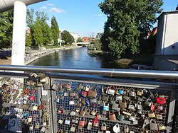 2. Wcześniej tego typu zwyczaj miał miejsce na moście Tumskim we Wrocławiu, a także we Lwowie, Wilnie (most Użupio), Paryżu, czy Rzymie (Ponte Milvio) – za http://bydgoszcz.wyborcza.pl/bydgoszcz/1,48722,8115127,Milosc_zamknij_na_klodke__a_klucz_wrzuc_do_Brdy.html.