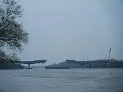 W tym samym czasie wykonano również stanowisko na prawym brzegu rzeki, z którego w kolejnym miesiącu miała być nasuwana, zmontowana konstrukcja mostu[7]. Nasuwanie rozpoczęto na przełomie stycznia i lutego 2010.