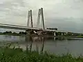 ![]() Most widziany z zachodu. U dołu po lewej stronie widoczny fragment Lasku Mogilskiego, natomiast przy lewej krawędzi widać budynek Ekologicznej Spalarni Odpadów | |