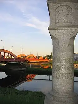 - ↑ Encyklopedia Wrocławia z roku 2000 podaje, że alternatywną nazwą tego mostu była Wiesenthalerbrücke (nazwę tę można by tłumaczyć jako „most Wiesenthalera”); w innych źródłach brak potwierdzenia tej wiadomości