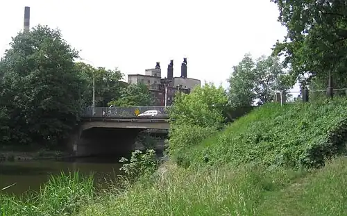 - ↑ nowa nitka sąsiadującego z mostem odcinka Alei Kromera, jak również nowe mosty, przebiega po południowej stronie starej ulicy i mostów, tzn. obsługuje ruch z centrum Wrocławia w kierunku Psiego Pola