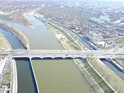 ![]() Pięcioprzęsłowy most środkowy i (w głębi, z łukami) jednoprzęsłowy wschodni[1] | |