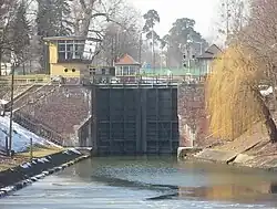 | 16 | Kładki na śluzie Miejskiej | 1840, 1890, 1955, 1981 | 10,0 | dla pieszych | stała kładka stalowa dla obsługi śluzy oraz kładka na wrotach dolnych (rozchylana na boki wraz ze skrzydłami wrót w czasie śluzowania) | |||