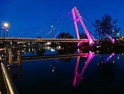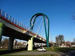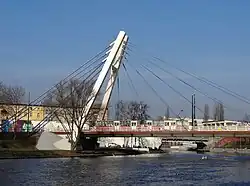| 21 | Kładka Czyżkówko-Jachcice | 2020 | 67 | dla pieszych | kładka łącząca ulicę Jednostroną (Jachcice) z Świekatowską (Czyżkówko) o szerokości ponad 8 m (droga rowerowa o szerokości 2,75 m oraz chodnik o szerokości 2 m), wykorzystująca konstrukcję nośną przeprowadzonego nad Brdą ciepłociągu[4]. 10 października 2018 bydgoski KPEC podpisał z konsorcjum firm Gotowski i Kormost umowę na zaprojektowanie i budowę estakady ciepłowniczej z kładką pieszo-rowerową. Projekt budowlany powstał do końca czerwca 2019 powstał, a 17 października 2019 rozpoczęto montaż konstrukcji kładki. Przeprawa jest stalową konstrukcją łukową z żelbetowym pomostem. Koszt inwestycji wyniósł 7 mln zł[5][6]. | |||