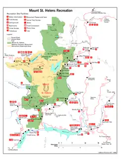 Narodowy Pomnik Mount St. Helens zajmuje 445 km² został założony w 1982 roku przez prezydenta Ronalda Reagana. Jest popularnym miejscem wypoczynku i edukacji. W przeciwieństwie do innych narodowych pomników przyroda jest chroniona.