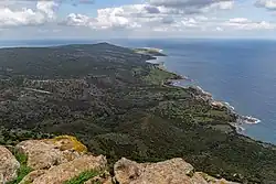 Szczyt wznosi się bezpośrednio nad północnym wybrzeżem półwyspu, na którym leży nadbrzeżna równina wokół miasta Polis wraz z zatoką Chrysochou. Po drugiej stronie zatoki widoczne jest z wierzchołka najwyższe pasmo górskie Cypru, Trodos wraz z oddalonym o ponad 51 kilometrów Olimbosem (1952 m n.p.m.). Ze szczytu widoczna jest panorama szczytów położonych w południowej Turcji, m.in. Sulugöl Tepe (2575 m n.p.m. odległy o 188 kilometrów), Geyik Dağı (2884 m n.p.m. oddalony o 204 kilometry), Karasivrisi Tepe (2333 m n.p.m. odległy o 214 kilometrów), Tahtali Dağı (2363 m n.p.m. oddalony o 236 kilometrów) oraz Kızlarsivrsi Dağı (3070 m n.p.m. odległy o 263 kilometry)[3].