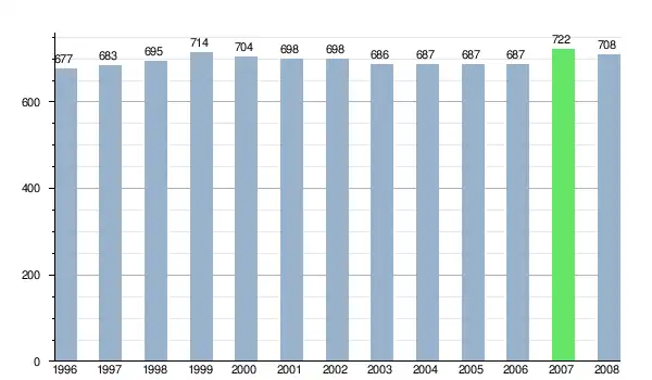 Według danych z dnia 31 grudnia 2012, wieś zamieszkiwały 753 osoby, w tym 379 kobiet i 374 mężczyzn[6].