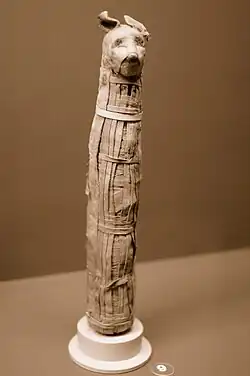Charakterystyczny dla Okresu Późnego i Grecko-Rzymskiego niezwykły wzrost kultu zwierząt skutkował masową mumifikacją zwierząt uważanych za święte lub związane z bóstwami i ich głównymi ośrodkami kultu, np. kotów, ibisów, sokołów, pawianów, baranów, krokodyli, psów. Wśród mniej znanych mumifikowanych zwierząt są gazele, węże, szczury i ryjówki. Do znanych zwierzęcych mumii należą ciała świętych byków Apisów pochowanych w Serapeum w Sakkarze. Ogromne cmentarzyska mumii zwierzęcych sięgają czasowo schyłku Nowego Państwa do Okresu Ptolemejskiego i Rzymskiego, gdy obyczaj i sztuka mumifikacji zaczęły upadać[4].