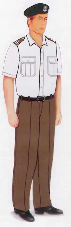 - ↑ Regulaminy mundurowe wyróżniają okres zimowy (1 października – 30 kwietnia) oraz okres letni (1 maja – 30 września). Miesiące są marzec, kwiecień, październik i listopad stanowią okres przejściowy.